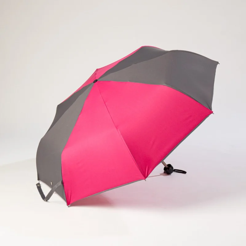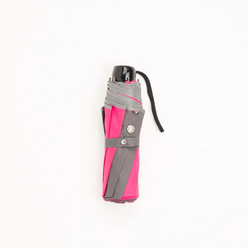 H2O Parapluies bietet einen himbeer- und grauen Regenschirm in einer Mini-Version an. Es ist mit einem zuverlässigen manuellen Öffnungsmechanismus ausgestattet. Dieser klassische, kleine und unverzichtbare Regenschirm ist dank seiner minimalistischen Abmessungen leicht zu transportieren.