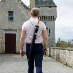This umbrella sleeve, in Black and Taupe leather, is handcrafted in Bressuire, in Deux-Sèvres. Elegant and robust, it effectively protects the canvas of your umbrella while adding a refined touch.