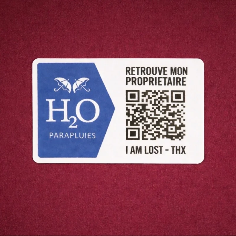 Ne perdez plus votre parapluie; il suffit qu'une personne scanne le qrcode pour que vous receviez un message sécurisé.