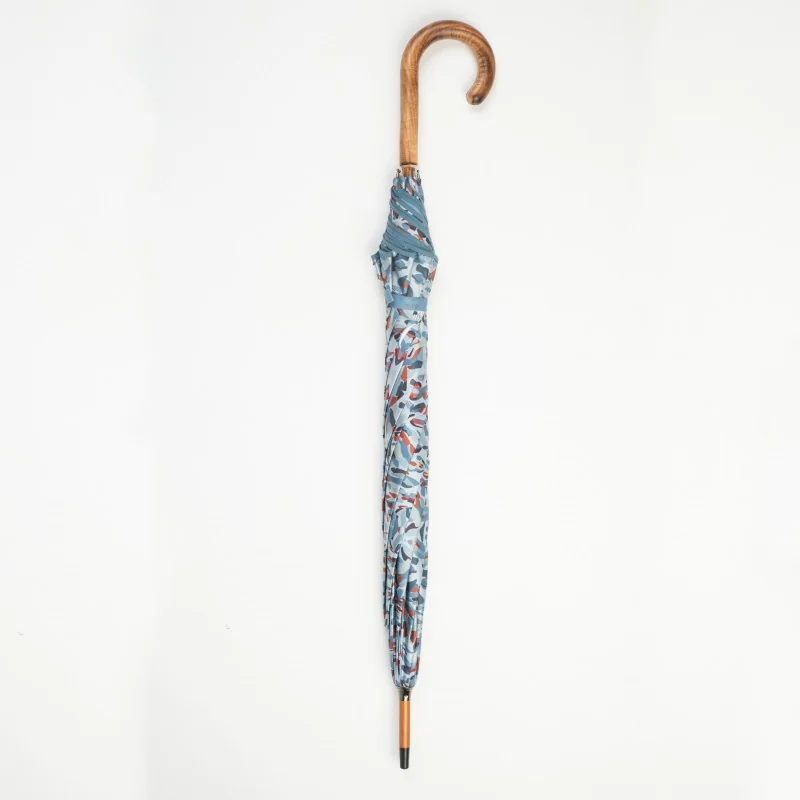 Les deux artisans ont marié leur savoir-faire afin de réaliser un parapluie au design singulier. Ils revisitent ainsi avec élégance et originalité le style « Camouflage » où le design constitué de camaïeux de bleu, évoque les nuances infinies de la mer de la Manche sous un ciel changeant.