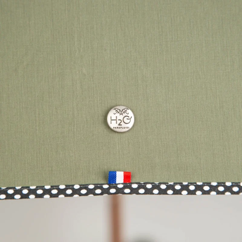 H2O Parapluies propose un parapluie à la teinte kaki biais pois blancs, en version pliant. Il est équipé d’un mécanisme fiable à ouverture automatique.